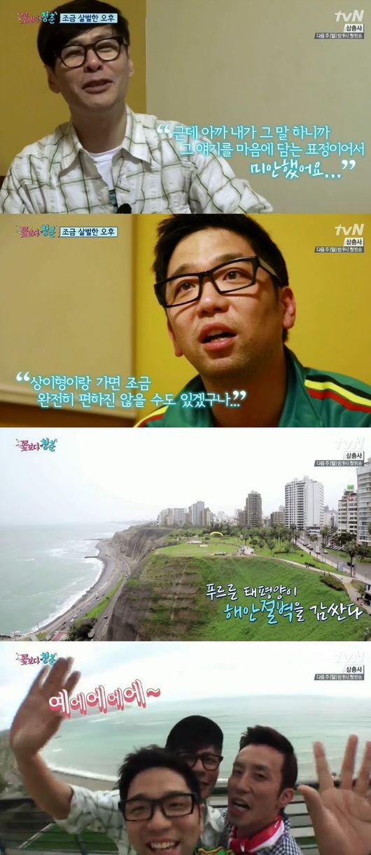 [OSEN=양지선 인턴기자] '꽃보다 청춘' 3인방이 아름다운 바다를 보며 언제 그랬냐는 듯 어색함을 풀었다.