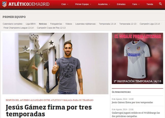 아틀레티코 마드리드가 헤수스 가메스(29, 말라가)를 영입했다.