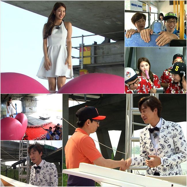 ‘한류 토끼’를 뽑은 지석진-김종국-하하-개리-송지효는 커다란 핑크색 하트 모형에서 수지가 걸어 나오자 기쁨을 감추지 못했다.