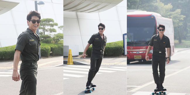 류수영은 9일 소속사인 윌엔터테인먼트 공식 페이스북을 통해 촬영 현장 사진을 공개, 극중 한광훈의 군복과 선글라스를 쓰고 파란색 스케이트 보드를 타며 유쾌한 매력을 발산했다.