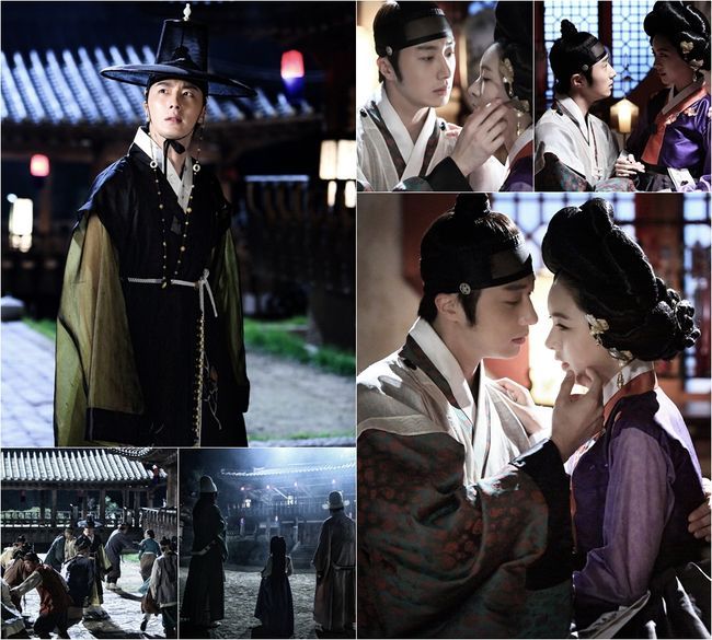또한 다른 사진 속 이린은 여유로운 모습으로 기생과 미묘한 분위기를 형성하고 있어 시선을 사로잡는다. 마치 기생과 입맞춤이라도 할 듯 그를 유혹하고 있는 이린의 매혹적인 눈빛과 포즈가 다음 상황에 대한 궁금증을 자아낸다.