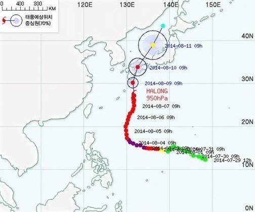 태풍 할롱 경로가 예상과 달리 한반도가 아닌 일본으로 북상 중이다.