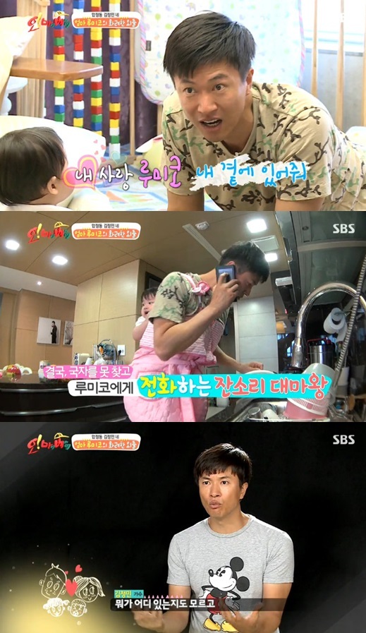 김정민은 9일 오후 방송된 SBS 예능프로그램 '오 마이 베이비'에서 세 아들을 아내 없이 혼자 돌보게 된 상황에 놓였다.