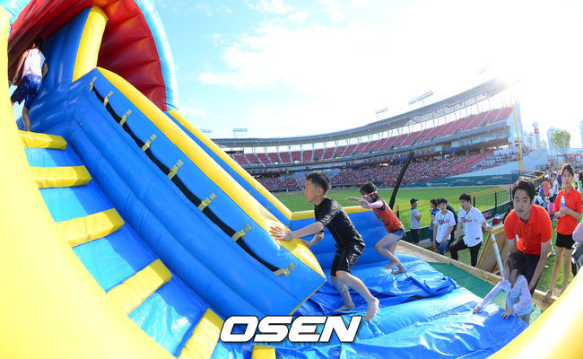 9일 광주-기아 챔피언스필드에서 열린 2014 한국야쿠르트 세븐 프로야구 KIA 타이거즈와 롯데 자이언츠의 경기, KIA타이거즈가 휴가철 주말 홈경기를 맞아 국내 최초로 야구장 물놀이 축제를 열었다.