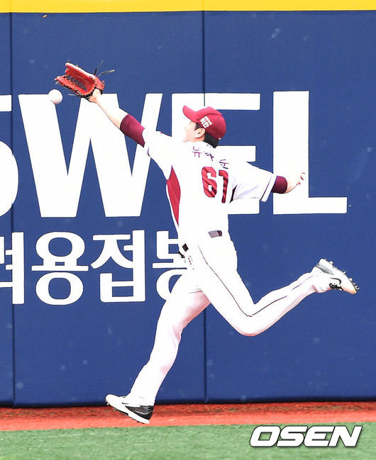 9일 오후 목동 야구장에서 열린 '2014 한국야쿠르트 세븐 프로야구' 넥센 히어로즈와 삼성 라이온즈 경기, 1회초 선두타자 나바로의 좌중간을 가르는 안타때 넥센 유한준 중견수가 수비를 펼쳤으나 안타를 허용하고 있다.