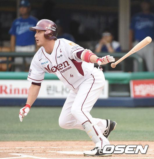 9일 오후 목동 야구장에서 열린 '2014 한국야쿠르트 세븐 프로야구' 넥센 히어로즈와 삼성 라이온즈 경기, 1회말 1사 이택근 동점 솔로 홈런을 날리고 있다.