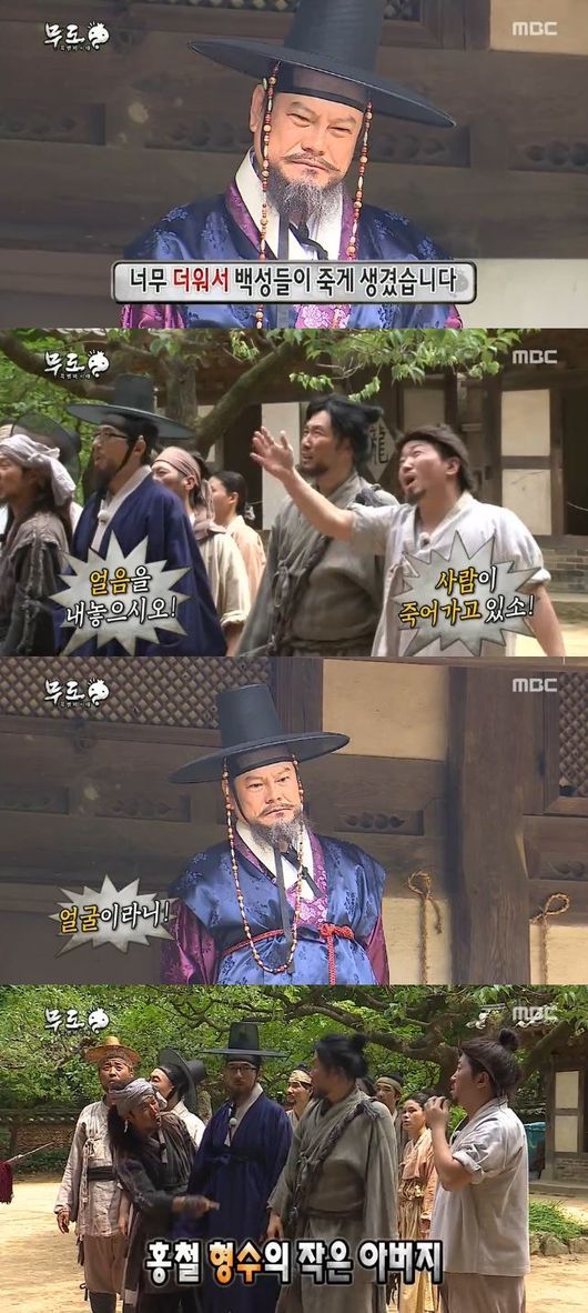 한편 이날 '무한도전'은 폭염으로 고생하던 조선시대로 돌아가 더위와 맞서 얼음을 사수하기 위해 추격전을 벌이는 '폭염의 시대' 특집으로 꾸며졌다.