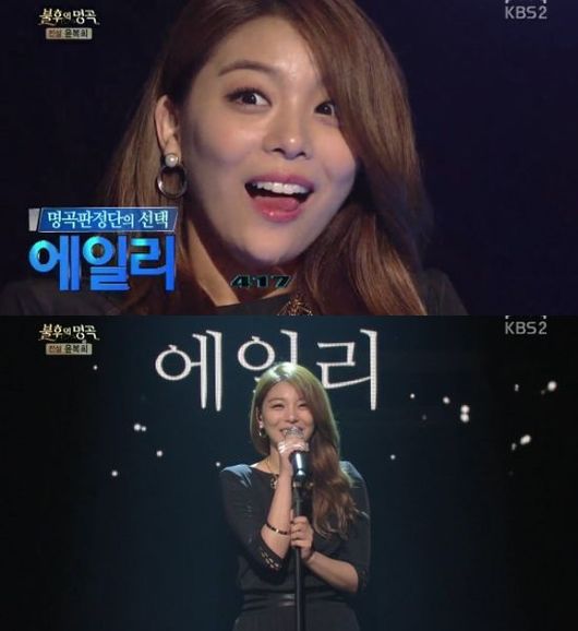 에일리는 9일 오후 방송된 KBS 2TV 예능프로그램 '불후의 명곡-전설을 노래하다'의 전설 윤복희 편에서 417점을 획득하며 우승을 차지했다.
