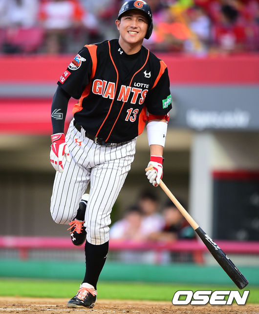9일 광주-기아 챔피언스필드에서 열린 2014 한국야쿠르트 세븐 프로야구 KIA 타이거즈와 롯데 자이언츠의 경기,3회초 2사 1,2루 롯데 황재균의 삼진아웃 당한뒤 아쉬워하고 잇다.