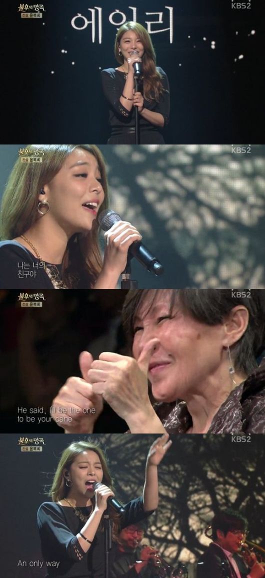 에일리는 9일 오후 방송된 KBS 2TV 예능프로그램 '불후의 명곡-전설을 노래하다'에서 윤복희의 곡 여러분'을 열창했다.