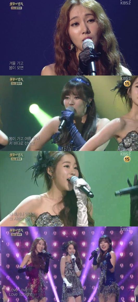 멜로디데이는 9일 오후 방송된 KBS 2TV 예능프로그램 '불후의 명곡-전설을 노래하다'에서 윤복희의 '이거야 정말'의 무대를 꾸몄다.