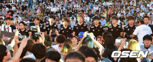 9일 오후 서울 반포동 세빛둥둥섬 야외무대(예빛섬)에서 'SK텔레콤 스타크래프트2 프로리그 2014 통합 결승전' SK텔레콤 T1과 KT 롤스터의 경기가 열렸다.
