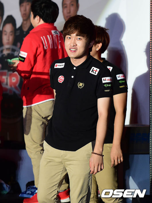결승전 2세트 SKT 원종현과 KT 이영호의 경기, 이영호가 승리를 거둔 뒤 미소짓고 있다.