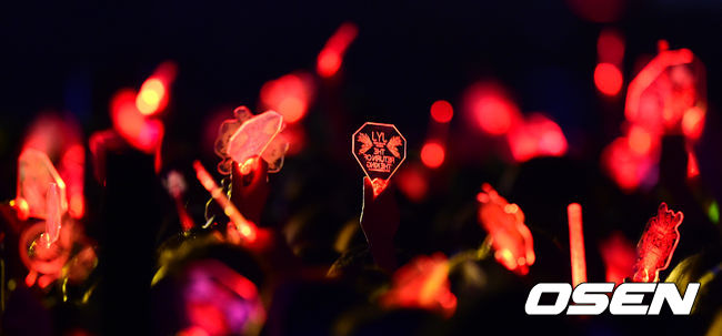JYJ(재중, 유천, 준수) 팬들이 야광복을 흔들며 공연을 기다리고 있다.
