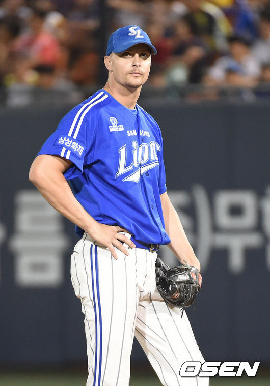 9일 오후 목동 야구장에서 열린 '2014 한국야쿠르트 세븐 프로야구' 넥센 히어로즈와 삼성 라이온즈 경기, 7회말 무사 만루 이택근에게 2실점을 허용한 마틴이 아쉬워하고 있다.