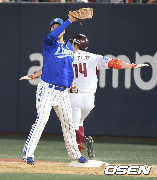 서건창은 아웃 판정을 받은 뒤 억울하다는 제스처를 취했고 넥센 벤치는 심판 합의 판정을 요청했다. 비디오 리플레이 결과 서건창은 세이프 판정을 받으며 무사 만루 찬스를 만들었다.