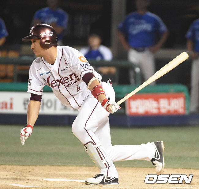 9일 오후 목동 야구장에서 열린 '2014 한국야쿠르트 세븐 프로야구' 넥센 히어로즈와 삼성 라이온즈 경기,7회말 무사 만루 이택근 2타점 적시타를 날리고 있다.
