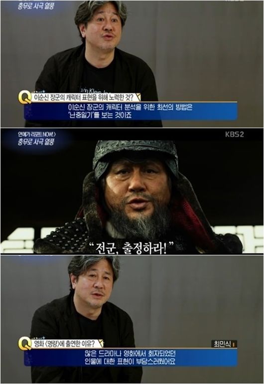 9일 방송된 KBS 2TV '연예가중계'에서는 한국영화 역사상 최단 기간 1000만 돌파를 이뤄내는 영화 '명량'의 주인공 최민식의 인터뷰가 전파를 탔다.