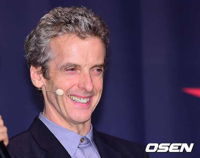 닥터후 역을 맡은 피터 카팔디가 미소 짓고 있다.