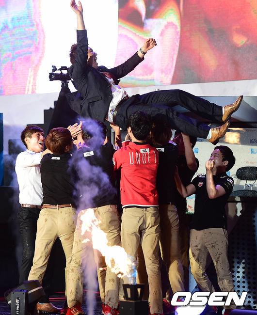 우승을 거머쥔 KT 롤스터 강도경 감독이 선수들에게 헹가래를 받고 있다. /dreamer@osen.co.kr