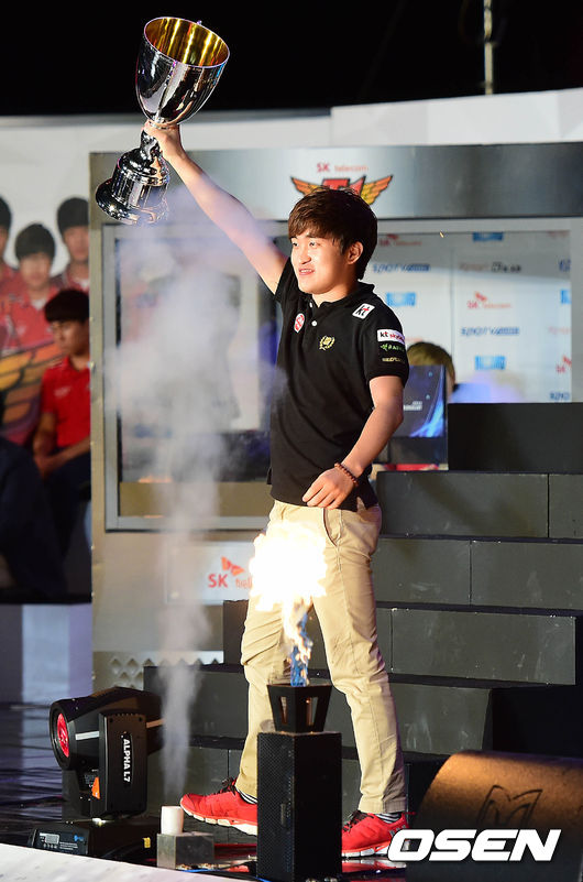 MVP를 거머쥔 KT 롤스터 이영호가 트로피를 번쩍 들며 환호하고 있다. /dreamer@osen.co.kr