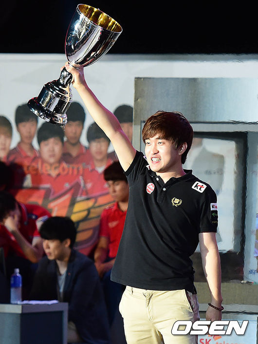 KT는 9일 서울 반포동 세빛둥둥섬 야외무대(예빛섬)에서 열린 'SK텔레콤 프로리그 2014' SK텔레콤과 통합결승전서 주축선수인 이영호와 김대엽, 전태양이 제 몫을 다해내면서 4-2 승리를 거두고 우승컵을 품에 안았다.