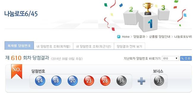 9일 저녁 추첨 된 나눔로또 당첨 번호는 14, 18, 20, 23, 28, 36번이며 보너스 번호는 33번이다.