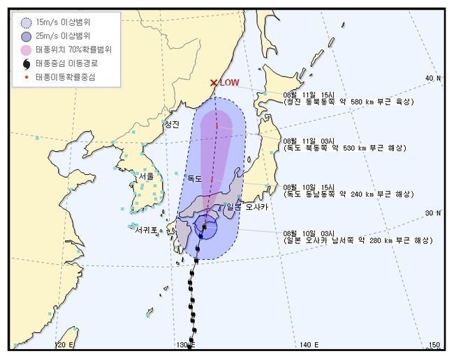 태풍 할롱 경로가 일본 열도를 남에서 북으로 관통해 독도 동쪽 해상으로 북상할 것으로 예상 되고 있다.
