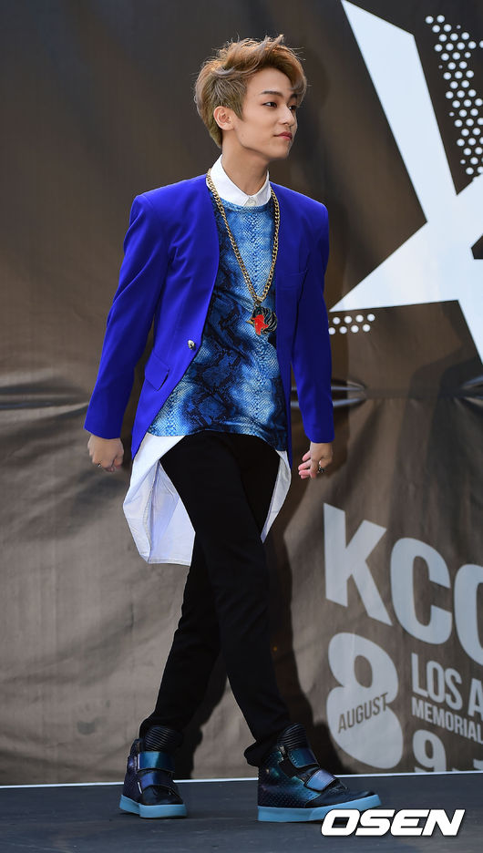 10일(이하 한국시간) 미국 캘리포니아주 로스앤젤레스 LA 메모리얼 스포츠 아레나에서 열리는 '엠넷 엠카운드다운 왓츠 업 LA'공연에 앞서 열린 레드카펫 행사에서 틴탑 엘조가 포토타임을 갖고 있다.