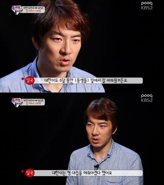 송일국은 "대한이가 8달 동안 밑에서 잘 버텨줬다. 정말로 잘 버텨줘서 동생들이 잘 나왔다"고 털어놓았다.