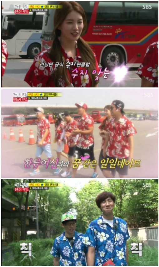 10일 방송된 SBS 예능프로그램 '일요일이 좋다-런닝맨' 208회는 걸 그룹 미쓰에이의 멤버 수지가 함께 한 '2014 한류스타 특집 레이스'로 꾸며졌다.