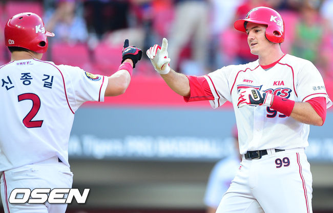필은 10일 광주-기아 챔피언스필드에서 열린 롯데와의 시즌 14차전 첫 타석에서 왼쪽 담장을 넘어가는 동점투런 홈런을 날렸다.
