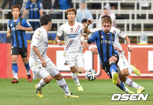 [OSEN=인천축구전용경기장, 이대선] 10일 오후 인천축구전용경기장에서 현대오일뱅크 2014 K리그 클래식 20라운드 인천 유나이티드와 경남 FC의 경기가 열렸다.