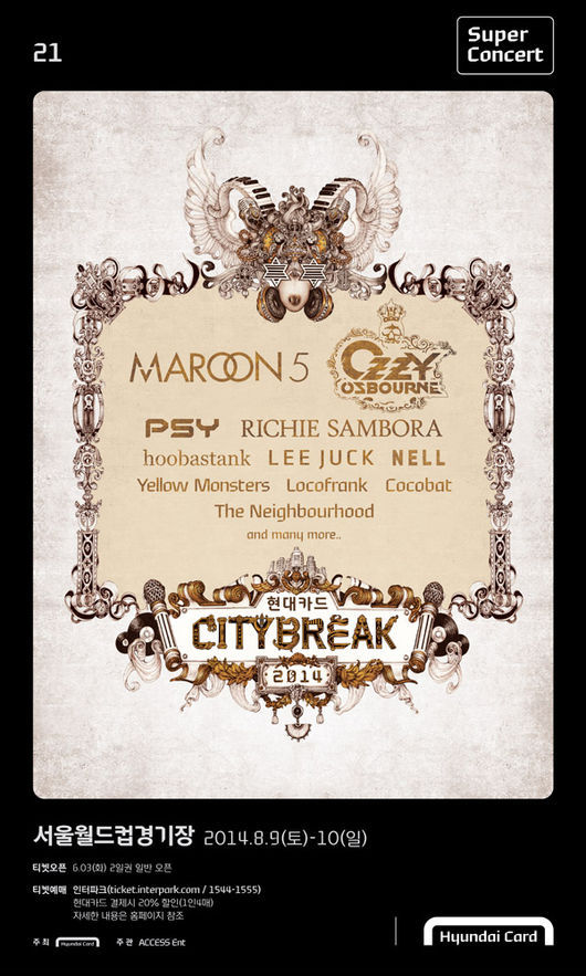 한편 지난 9일에 이은 10일 ‘시티브레이크’에서는 이적, 옐로우 몬스터즈, 판타스틱 드럭스토어, 텐시러브, 로로스, 이아립, 마룬파이브, 24 Hours, 로지피피 등이 2차 라인업에 이름을 올렸다.