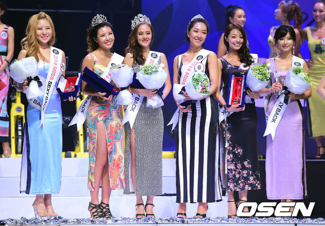 10일 오후 서울 광장동 악스코리아 콘서트홀에서 열린 '2014 미스 섹시백'(MISS SEXY BACK) 콘테스트 본선에서 수상자들이 포즈를 취하고 있다.
