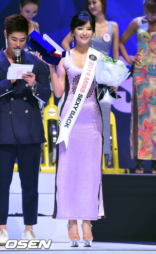 10일 오후 서울 광장동 악스코리아 콘서트홀에서 열린 '2014 미스 섹시백'(MISS SEXY BACK) 콘테스트 본선에서 특별상을 수상한 윤선희가 미소를 짓고 있다.