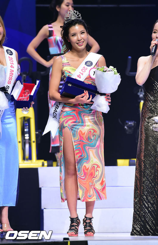 10일 오후 서울 광장동 악스코리아 콘서트홀에서 열린 '2014 미스 섹시백'(MISS SEXY BACK) 콘테스트 본선에서 최우수상을 수상한 김한나가 미소를 짓고 있다.