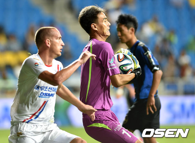 후반 인천 골키퍼 권정혁이 경남의 센터링을 막아내고 있다. /sunday@osen.co.kr