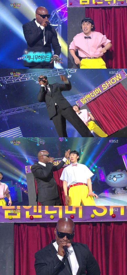 10일 오후 9시 15분 방송된 KBS 2TV '개그콘서트'의 '덤앤더머쇼' 코너에는 케니 무하마드가 깜짝 등장해 깜짝 놀랄 비트 박스 실력을 뽐냈다.