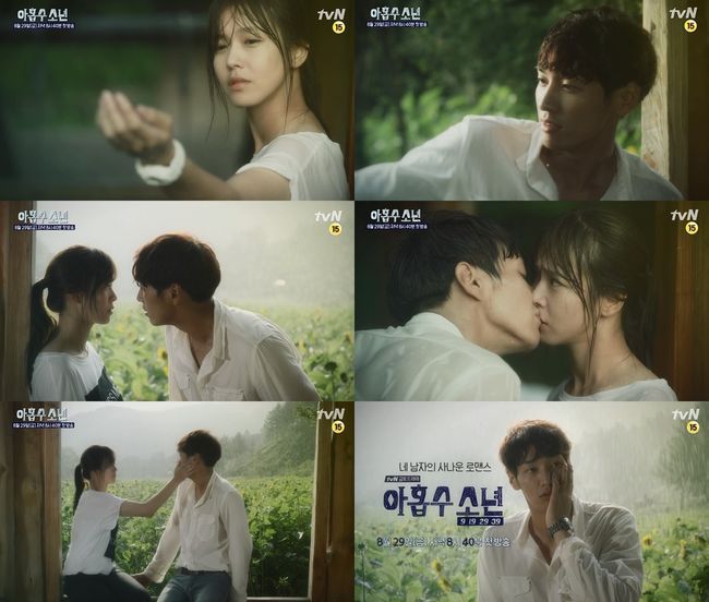 '아홉수 소년'의 김영광과 경수진의 빗속 키스신이 공개됐다.
