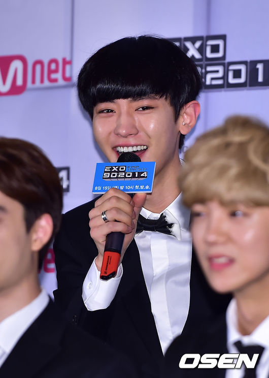 찬열은 11일 오전 서울 상암동 CJ E&M 미디어홀에서 열린 Mnet ‘EXO 902014’ 제작발표회에서 “시청률이 40% 나왔으면 좋겠다”며 “40% 시청률이 나오면 삭발하겠다”고 말해 웃음을 자아냈다.
