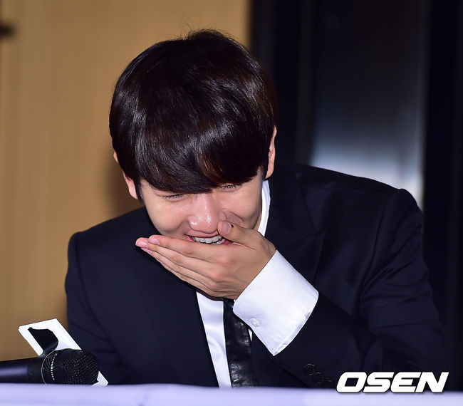 11일 오전 서울 마포구 상암동 CJ E&M센터 1층 미디어홀에서 열린 엠넷 '엠넷 K-POP 타임슬립 EXO 90:2014 (이하 엑소 902014)' 기자간담회에서, 엑소의 백현이 환하게 웃고 있다.