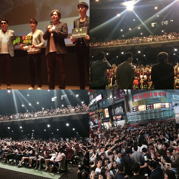 메가박스 부산극장 1,000석 이상의 상영관을 가득 메운 관객들이 폭발적 함성과 박수갈채를 보낸 것은 물론 ‘명량’ 배우들의 등장에 부산 서면 일대가 인산인해를 이뤘으며 비가 오는 궂은 날씨에도 불구하고 부산, 대구의 전 극장이 매진행렬을 이뤄 영화에 대한 폭발적 열기를 보여줬다.