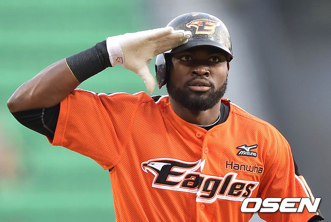 1회초 1사 만루에서 한화 피에가 만루 홈런을 치고 환호하고 있다.