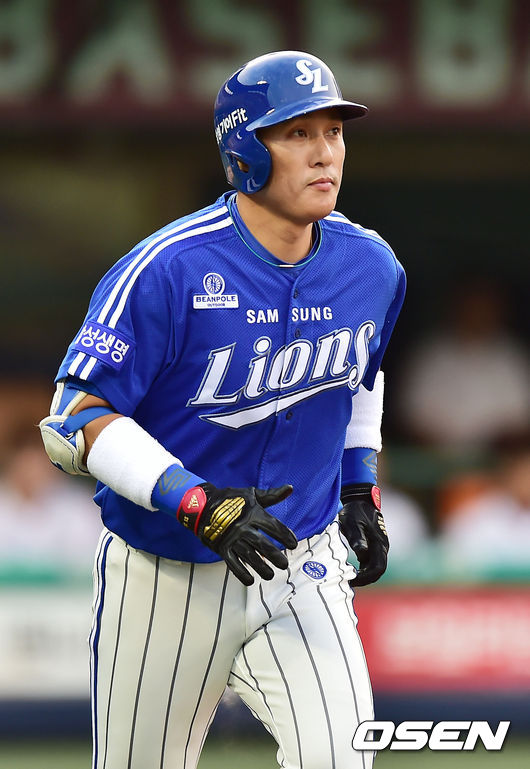 11일 오후 서울 목동 야구장에서 열린 '2014 한국야쿠르트 세븐 프로야구' 넥센 히어로즈와 삼성 라이온즈의 경기, 2회초 무사 1루에서 삼성 이승엽이 우중간 투런포를 때린 후 타구를 바라보고 있다.