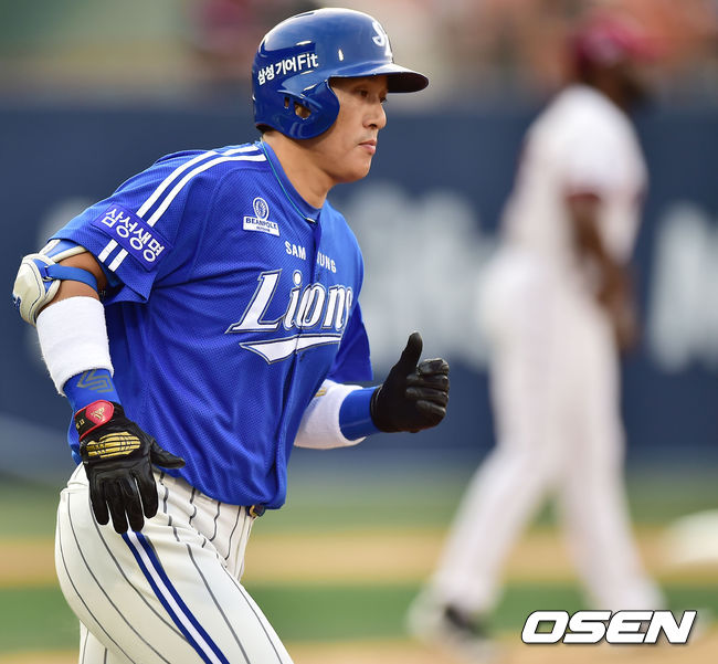 11일 오후 서울 목동 야구장에서 열린 '2014 한국야쿠르트 세븐 프로야구' 넥센 히어로즈와 삼성 라이온즈의 경기, 2회초 무사 1루에서 삼성 이승엽이 우중간 투런포를 날린 후 그라운드를 돌고 있다.