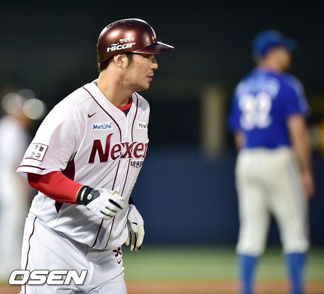11일 오후 서울 목동 야구장에서 열린 '2014 한국야쿠르트 세븐 프로야구' 넥센 히어로즈와 삼성 라이온즈의 경기, 4회말 1사 주자 2루 넥센 박병호가 중월 투런 홈런을 날리고 있다.