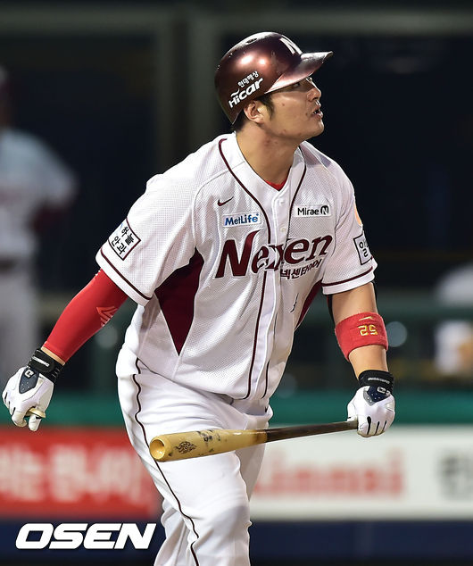 11일 오후 서울 목동 야구장에서 열린 '2014 한국야쿠르트 세븐 프로야구' 넥센 히어로즈와 삼성 라이온즈의 경기, 4회말 1사 주자 2루 넥센 박병호가 중월 투런 홈런을 날리고 있다.