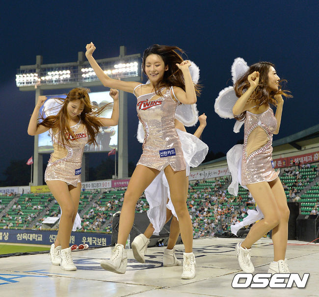 LG 치어리더가 화려한 공연을 펼치고 있다.