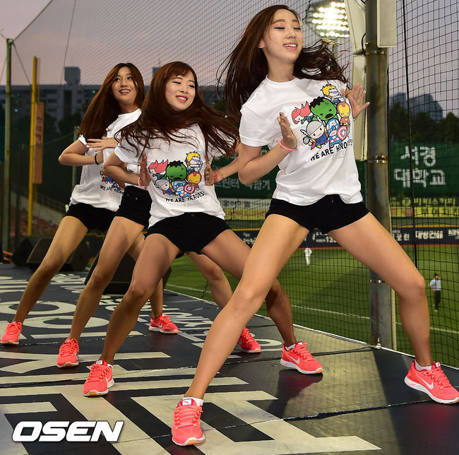 11일 오후 서울 목동 야구장에서 열린 '2014 한국야쿠르트 세븐 프로야구' 넥센 히어로즈와 삼성 라이온즈의 경기, 넥센 치어리더가 무대 위에서 화려한 공연을 펼치고 있다.